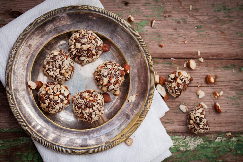 Forma till bollar och rulla i hackade hasselnötter. Låt stå kallt minst 30 minuter. Förvara sedan i en lufttät burk i kylen.